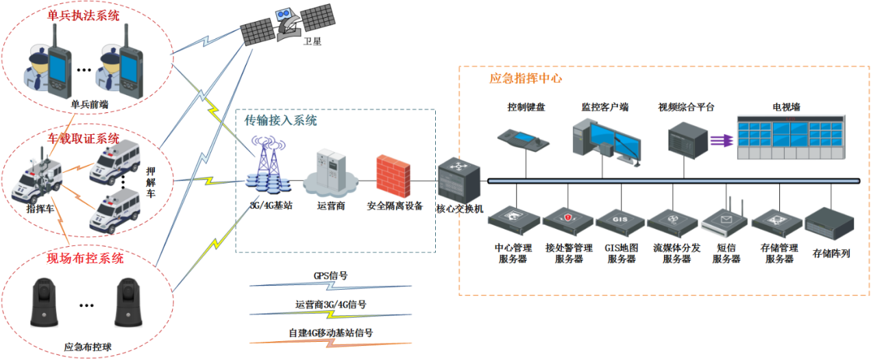 平安城市移动警务系统,以公安实战指挥平台为核心,警车车载设备、警员单兵设备为终端,3G/4G无线传输技术为桥梁,搭建一套集警力调度、即时通讯、结构化数据交互功能于一体的移动警务系统,为公安民警一线执勤和公安实战指挥提供解决方案。